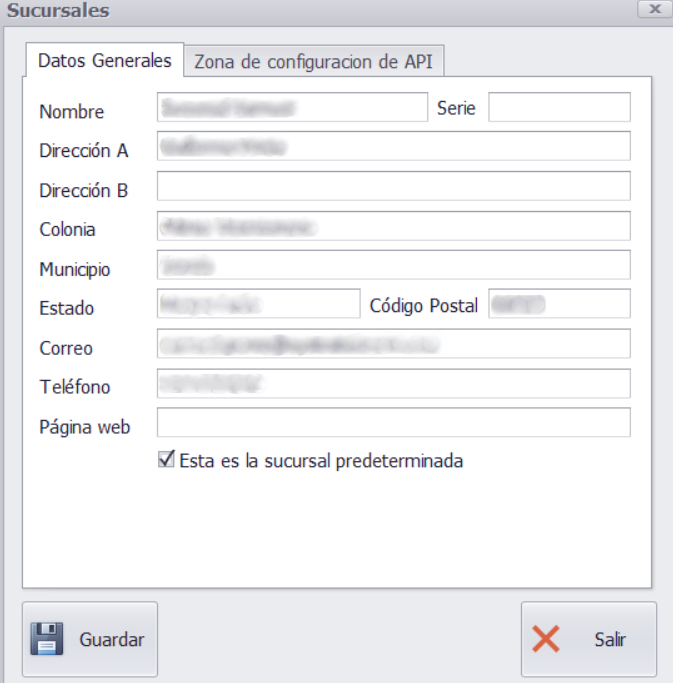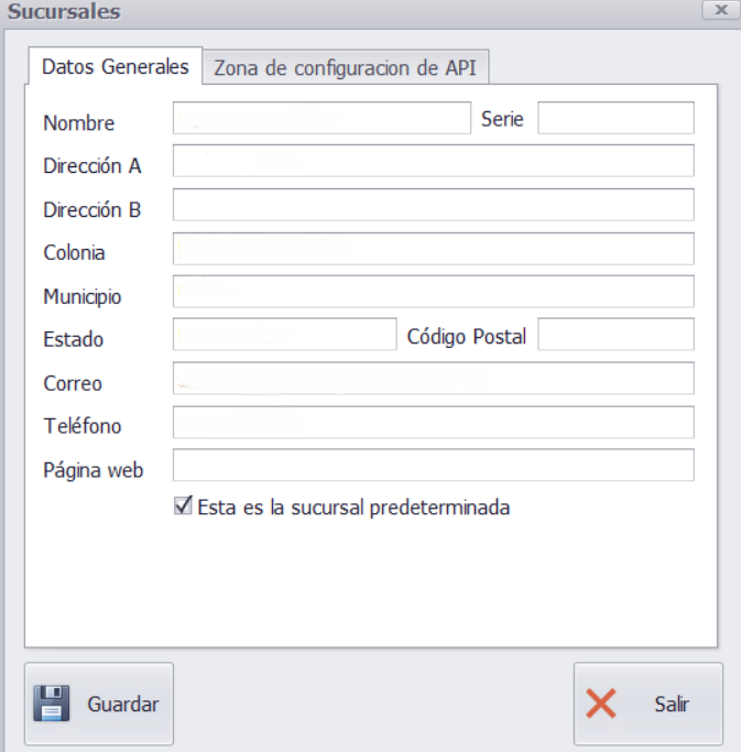 - Nombre de la sucursal: Ejemplo: "Sucursal Matriz", "Sucursal Cumbres".