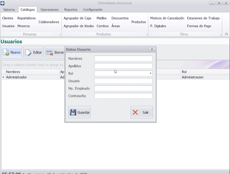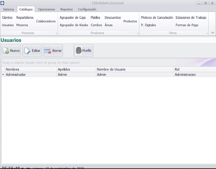 En el catálogo de usuarios podrás crear, modificar o eliminar cuentas. Cada usuario debe tener asignados los siguientes datos: