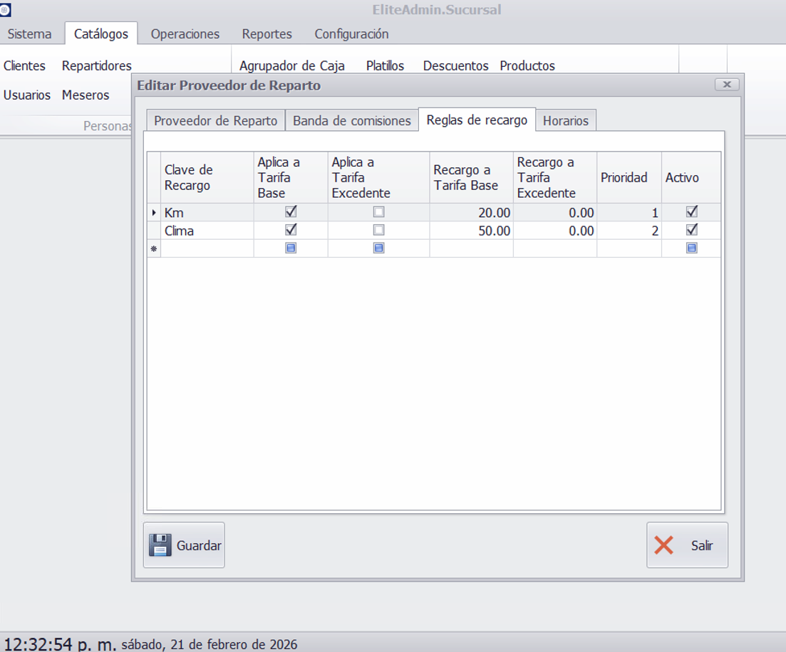 Estos recargos se suman automáticamente cuando la condición está activa.