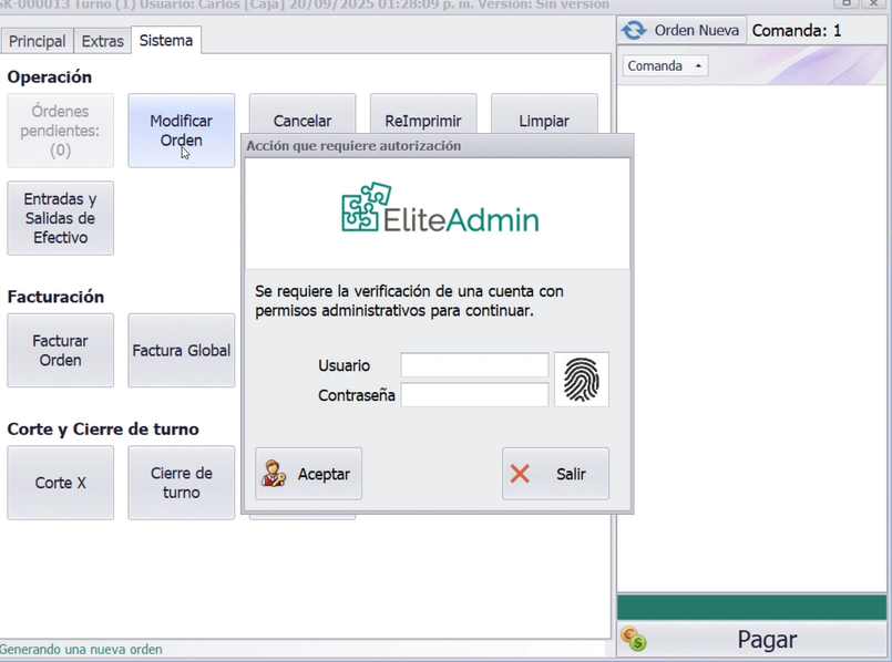 - Modificar órdenes: permite agregar/eliminar platillos, ajustando pagos o reembolsos.