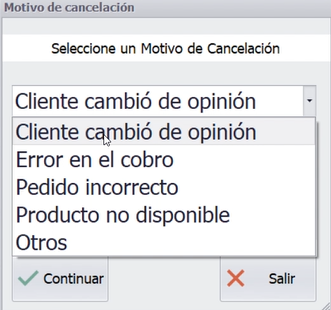 - El sistema solicita un motivo de cancelación (predefinido o personalizado).
