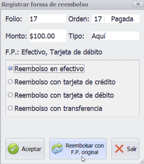 - El reembolso puede hacerse en las formas de pago originales, en efectivo o en trasnferencia.