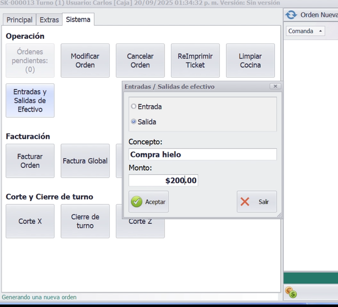 - Entradas/Salidas de efectivo: mantiene el control de dinero fuera de ventas normales.