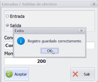 - Salidas: Registrar retiros para compras o pagos (ejemplo: compra de hielo).