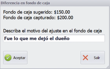 Si el cajero registra un monto distinto al esperado (mayor o menor), el sistema detecta la diferencia y solicita capturar el motivo del ajuste. Esto asegura que cada cambio quede documentado y justificado dentro del sistema.