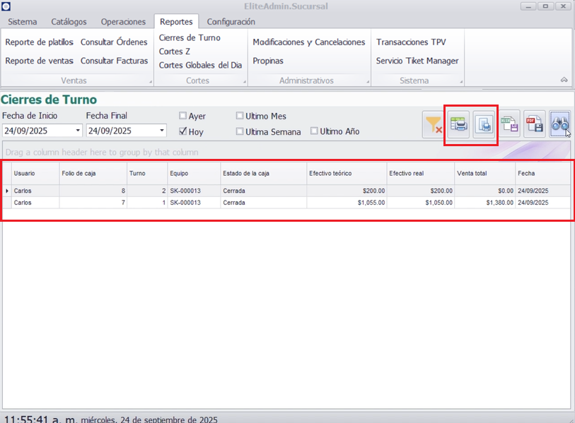 - Revisar todos los cierres de turno.