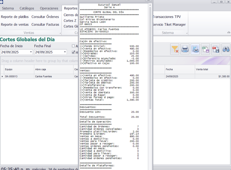 - El apartado de reportes permite revisar, analizar y generar impresiones de toda la actividad de ventas del día.