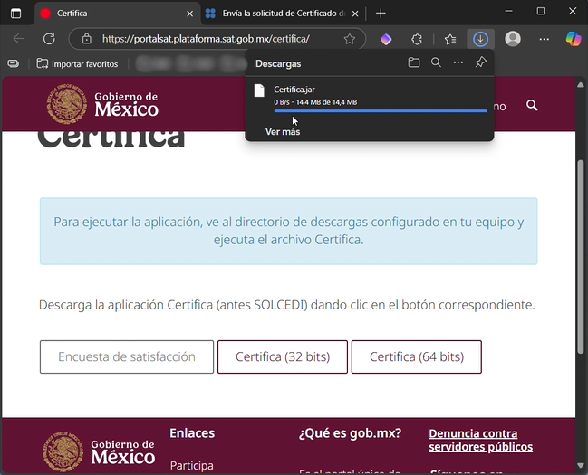- Después de unos minutos, ingresar nuevamente a la página del SAT.