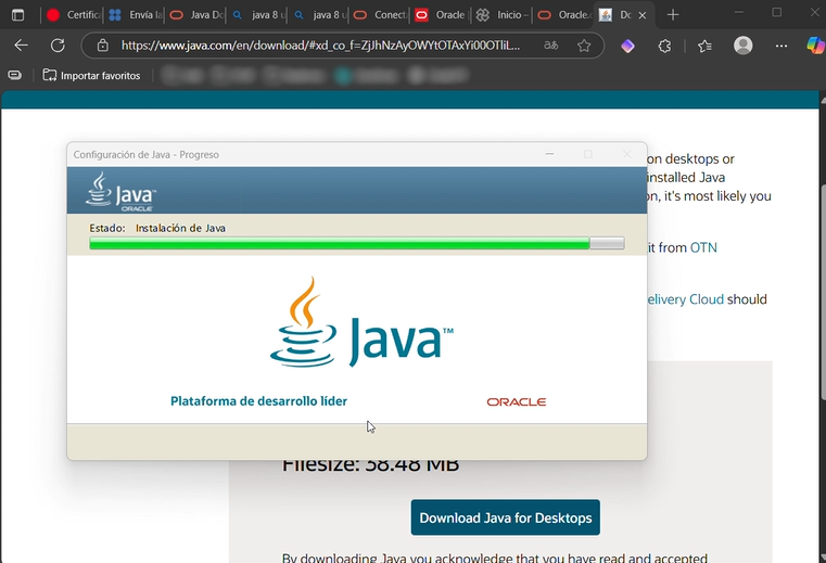 - Acceder a la página oficial de Oracle y descargar Java 8 (JDK).
