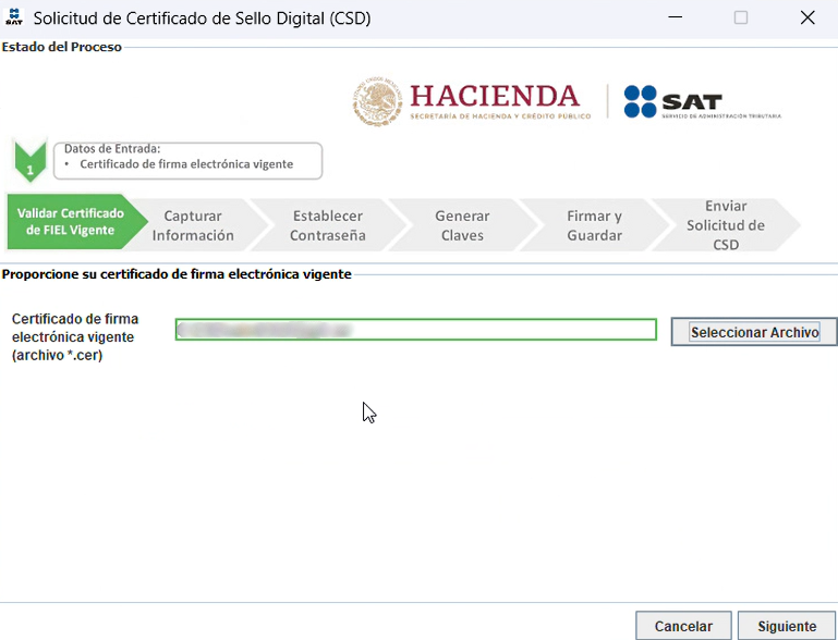 - Cargar la FIEL vigente (archivos .cer y .key con su contraseña).