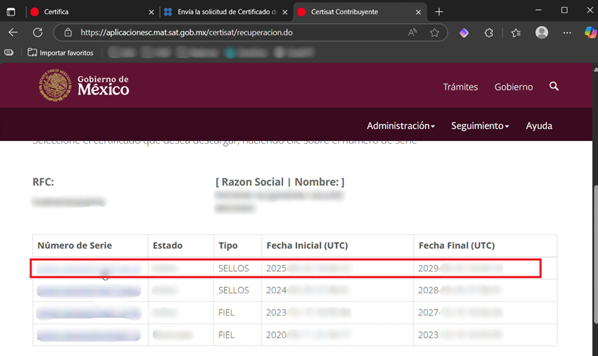 Nota: El SAT tarda de 24 a 72 horas en autorizar el uso del CSD para facturación.