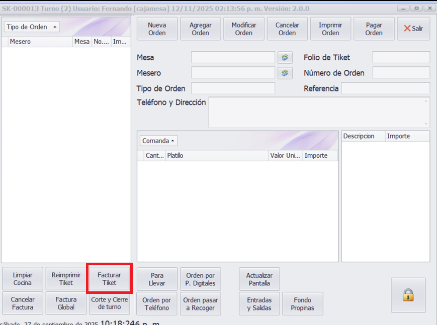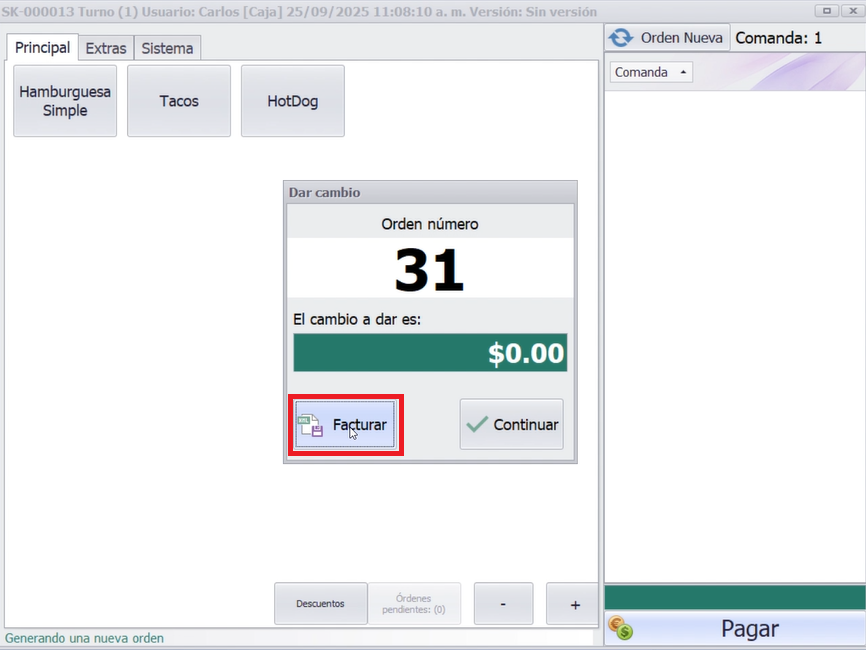 - Al imprimir el ticket, selecciona la opción Facturar.