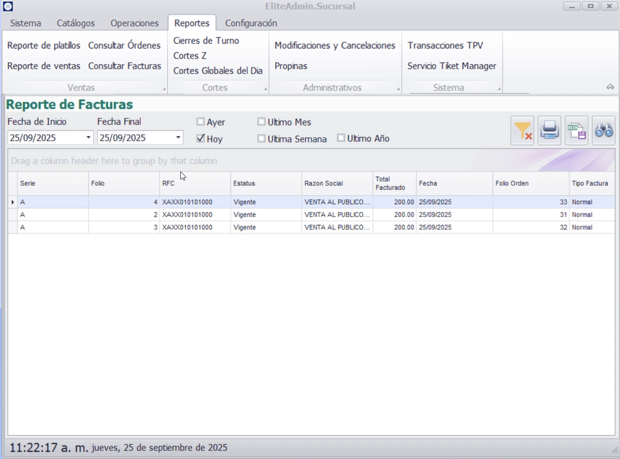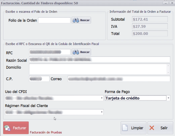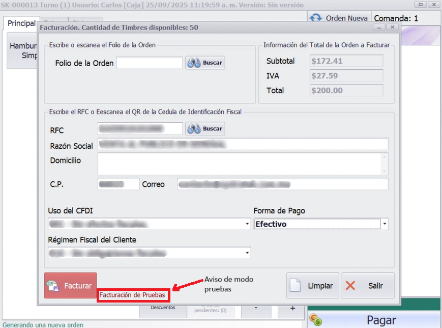 - En modo pruebas, las facturas no tienen validez fiscal.