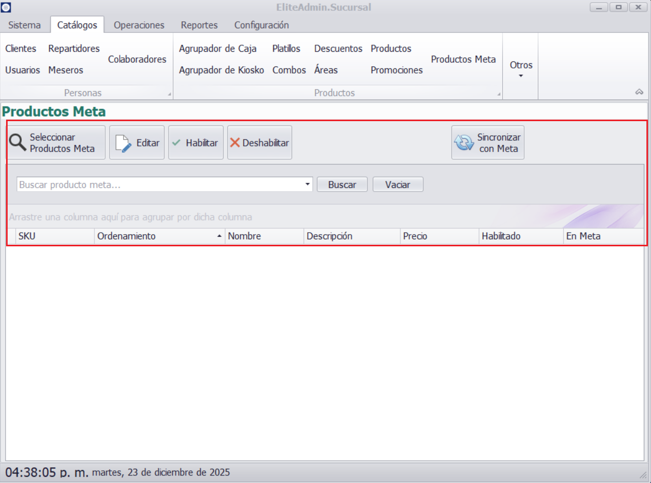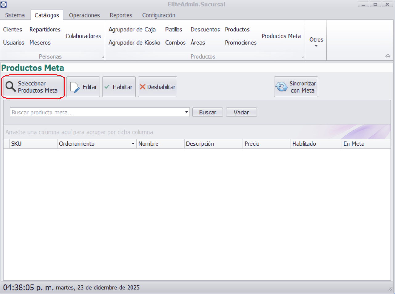 - Buscar la opción Productos Meta.