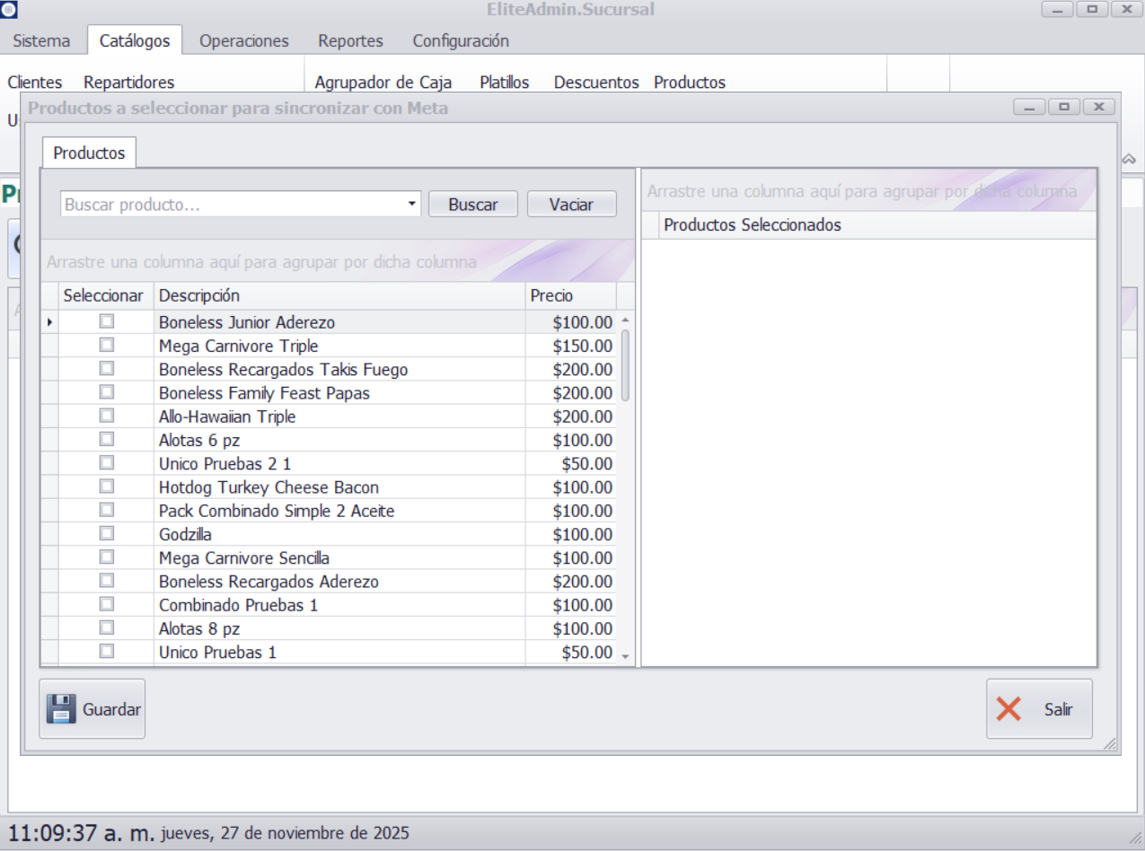 Este manual explica el uso del catálogo de Productos Meta, donde se gestionan los productos que se utilizarán para gestionar los productos disponibles para los clientes a través de WhatsApp (Meta). Desde esta sección es posible seleccionar, editar, habilitar y deshabilitar los productos que se sincronizarán con Meta.